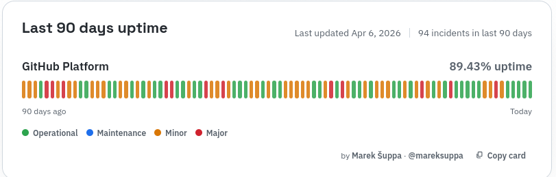 I wasn't aware just how slow GitHub was until @cloudymax and I started selfhosting Forgejo, but I am so impressed. It is instant for pushes and pulls. I hadn't realized that I was probably waiting a collective... maybe 10 minutes per day, just waiting for GitHub?